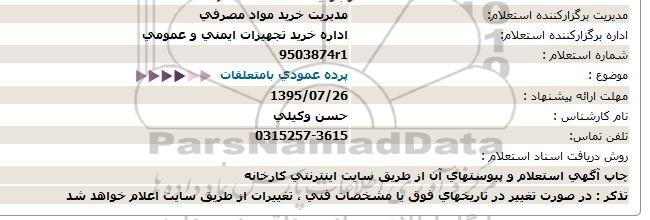 اداره برگزارکننده استعلام: اداره خرید تجهیزات ایمنی و عمومی