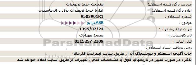 اداره برگزارکننده استعلام: اداره خرید تجهیزات برق و اتوماسیون
