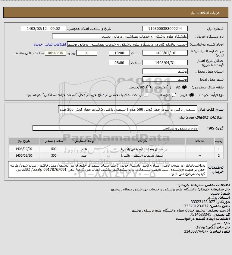 نام دستگاه خریدار:دانشگاه علوم پزشکی و خدمات بهداشتی درمانی بوشهر