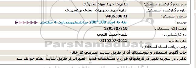 اداره برگزارکننده استعلام: اداره خرید تجهیزات ایمنی و عمومی