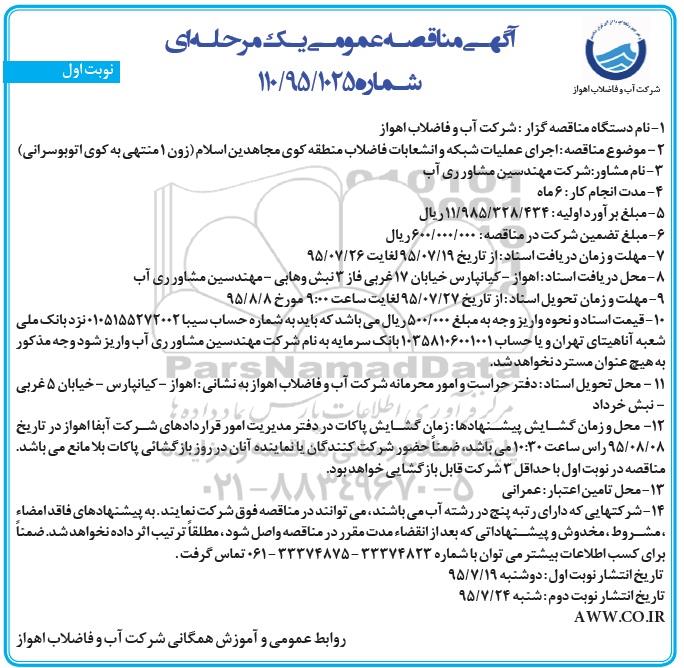 1- نام دستگاه مناقصه گزار: شرکت اب و فاضلاب اهواز