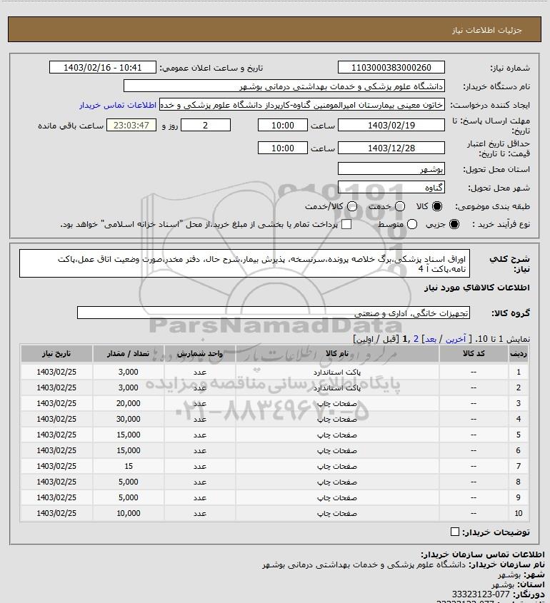 نام سازمان خریدار: دانشگاه علوم پزشکی و خدمات بهداشتی درمانی بوشهر