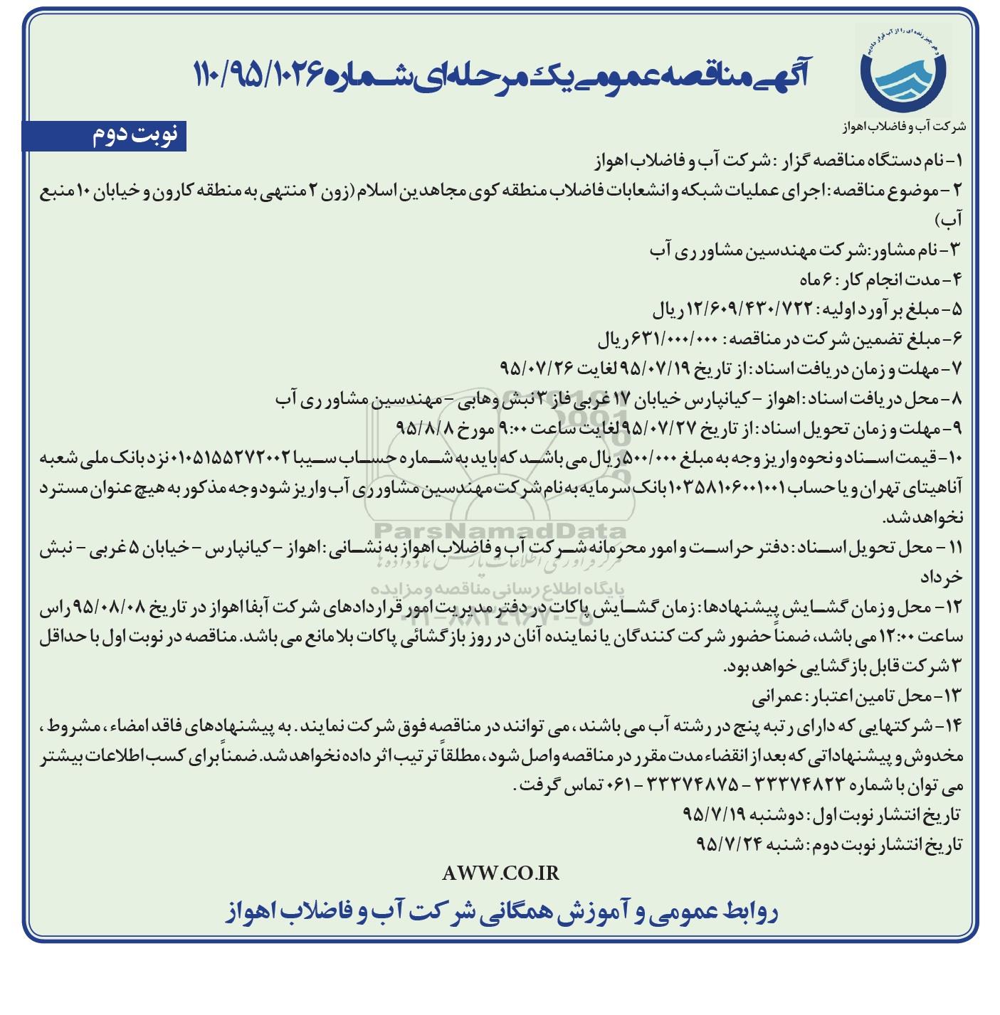 1- نام دستگاه مناقصه گزار: شرکت اب و فاضلاب اهواز