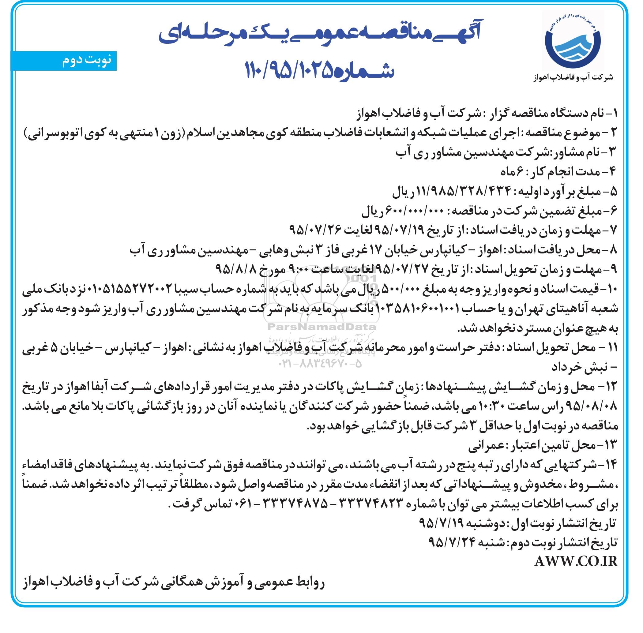 1- نام دستگاه مناقصه گزار: شرکت اب و فاضلاب اهواز