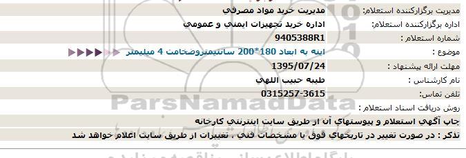اداره برگزارکننده استعلام: اداره خرید تجهیزات ایمنی و عمومی