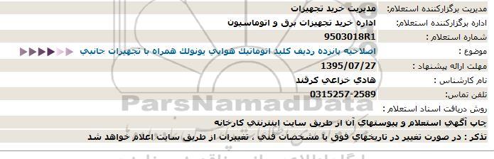 اداره برگزارکننده استعلام: اداره خرید تجهیزات برق و اتوماسیون