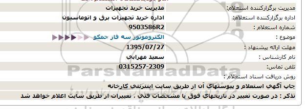 اداره برگزارکننده استعلام: اداره خرید تجهیزات برق و اتوماسیون