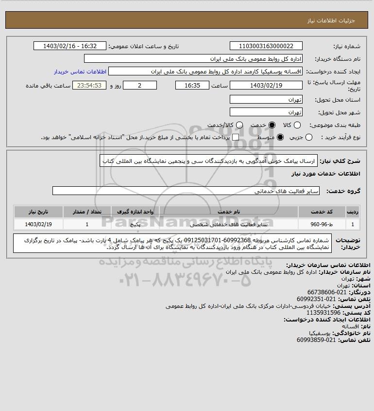 شرح کلی نیاز: ارسال پیامک خوش آمدگویی به بازدیدکنندگان سی و پنجمین نمایشگاه بین المللی کتاب