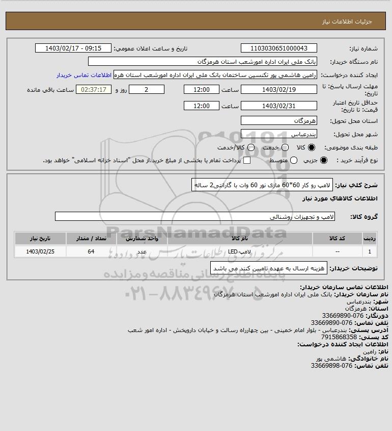 نام سازمان خریدار: بانک ملی ایران اداره امورشعب استان هرمزگان