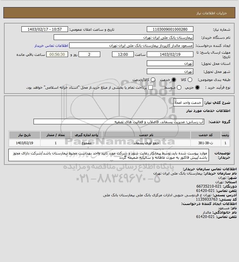 نام دستگاه خریدار:بیمارستان بانک ملی ایران تهران