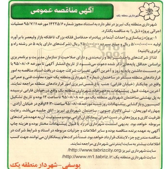 شهرداری منطقه یک تبریز در نظر دارد عملیات اجرائی پروژه ذیل را به مناقصه بگذارد.