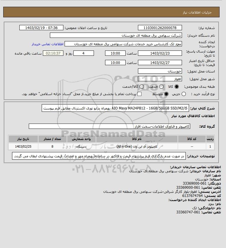 نام دستگاه خریدار:شرکت سهامی برق منطقه ای خوزستان