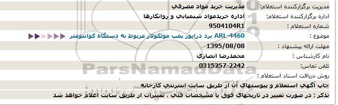 اداره برگزارکننده استعلام: اداره خریدمواد شیمیایی و روانكارها