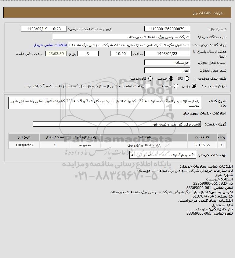 توضیحات خریدار:تاًئید و بارگذاری اسناد استعلام در سامانه