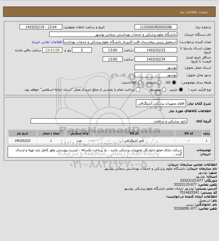 | 1 | -- | کاتتر آنژیوگرافی | عدد | 1 | 1403/02/23 |
