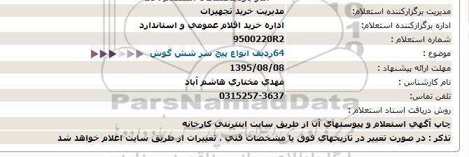 اداره برگزارکننده استعلام: اداره خرید اقلام عمومی و استاندارد