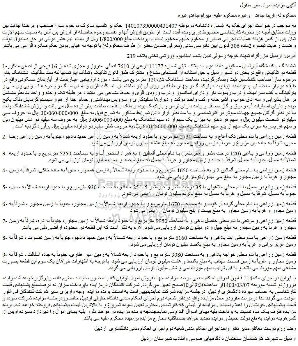 شعبه صادر کننده:شعبه دوم اجرای احکام مدنی دادگستری شهرستان اردبیل/قدیم