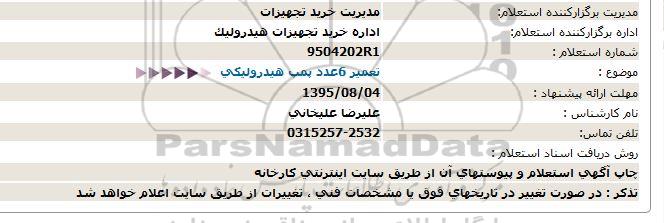اداره برگزارکننده استعلام: اداره خرید تجهیزات هیدرولیک