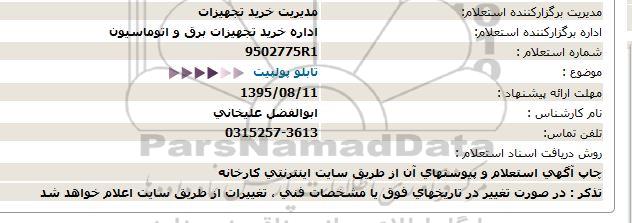 اداره برگزارکننده استعلام: اداره خرید تجهیزات برق و اتوماسیون