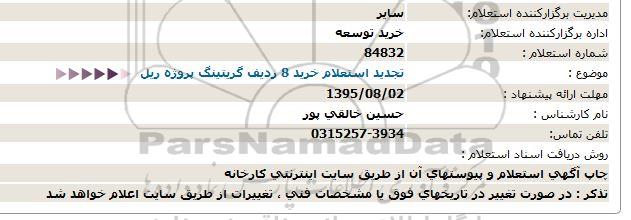 موضوع : تجدید استعلام خرید 8 ردیف گریتینگ پروژه ریل