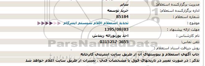 موضوع : تجدید استعلام خرید اقلام سیستم اینتركام