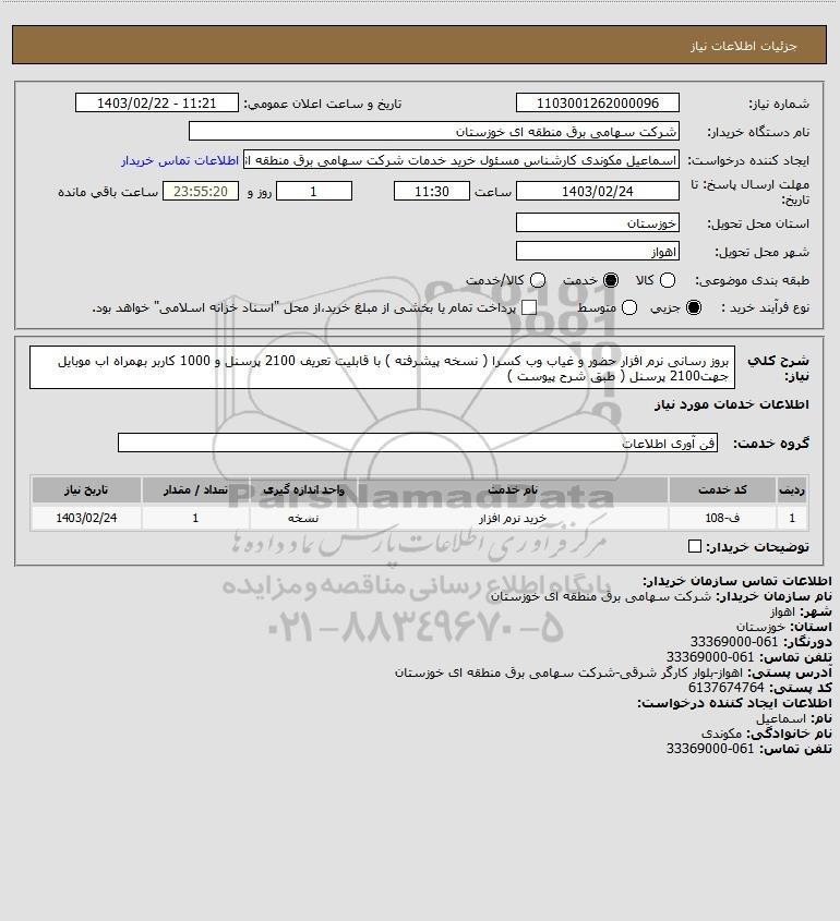 نام سازمان خریدار: شرکت سهامی برق منطقه ای خوزستان