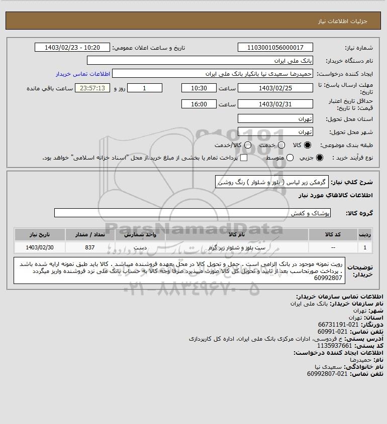 توضیحات خریدار:رویت نمونه موجود در بانک الزامی است . حمل و تحویل کالا در محل بعهده فروشنده میباشد . کالا باید طبق نمونه ارایه شده باشد . پرداخت صورتحاسب بعد از تایید و تحویل کل کالا صورت میپذیرد صرفا وجه کالا به حساب بانک ملی نزد فروشنده واریز میگردد 60992807