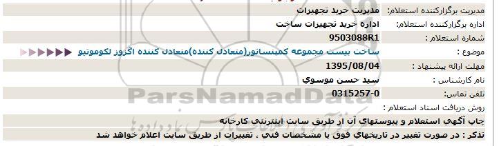 اداره برگزارکننده استعلام: اداره خرید تجهیزات ساخت