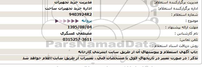 اداره برگزارکننده استعلام: اداره خرید تجهیزات ساخت