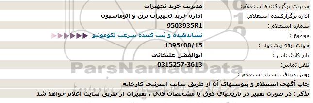 اداره برگزارکننده استعلام: اداره خرید تجهیزات برق و اتوماسیون