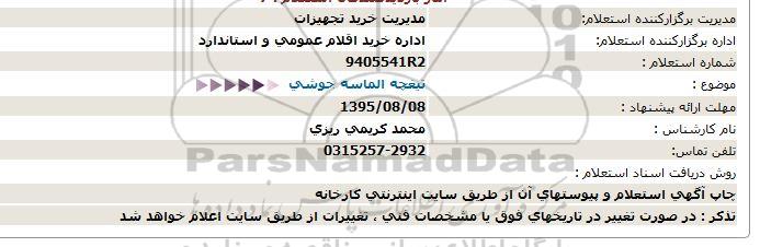 اداره برگزارکننده استعلام: اداره خرید اقلام عمومی و استاندارد