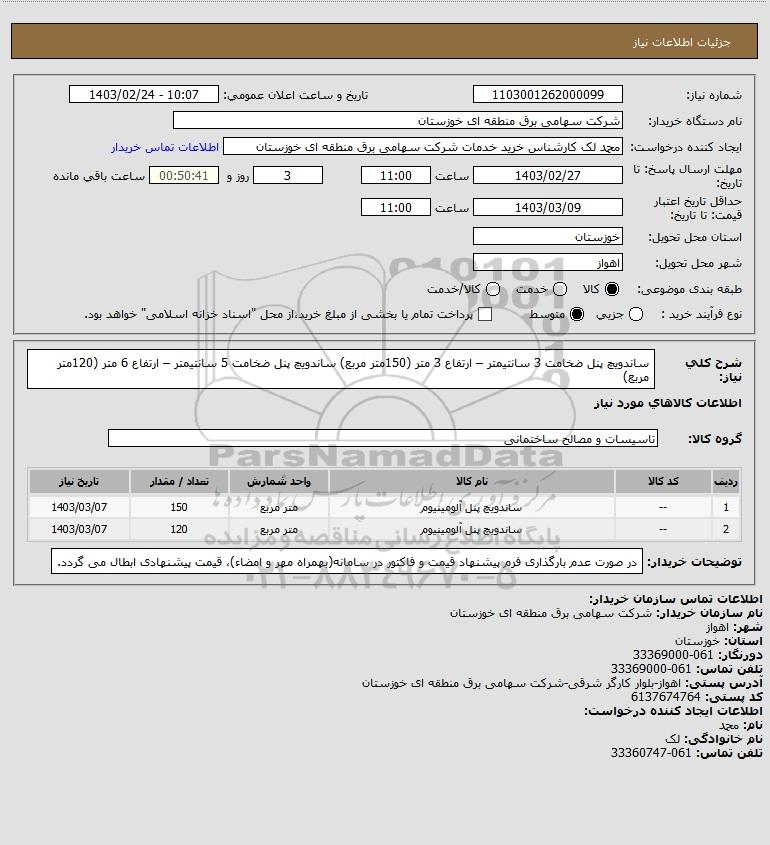 استعلام ساندویچ پنل ضخامت 3 سانتیمتر – ارتفاع 3 متر (150متر مربع) ساندویچ پنل ضخامت 5 سانتیمتر – ارتفاع 6 متر (120متر مربع), استعلام ساندویچ پنل ضخامت 3 سانتیمتر – ارتفاع 3 متر (150متر مربع) ساندویچ پنل ضخامت 5 سانتیمتر – ارتفاع 6 متر (120متر مربع)
