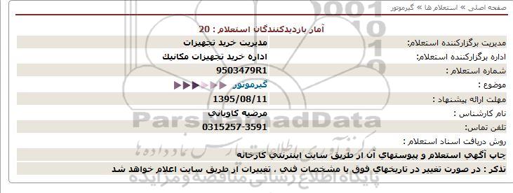 اداره برگزارکننده استعلام: اداره خرید تجهیزات مكانیک