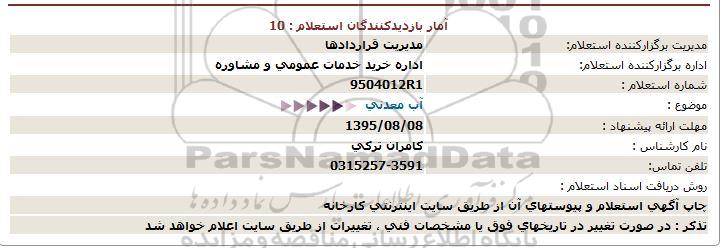 اداره برگزارکننده استعلام: اداره خرید خدمات عمومی و مشاوره