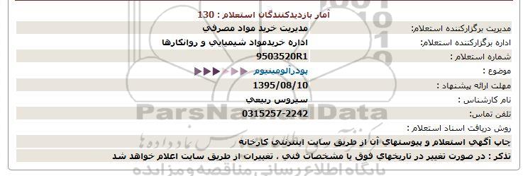 اداره برگزارکننده استعلام: اداره خرید مواد شیمیایی و روانکارها