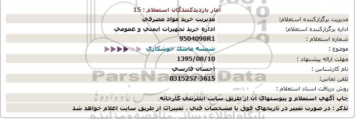اداره برگزارکننده استعلام: اداره خرید تجهیزات ایمنی و عمومی