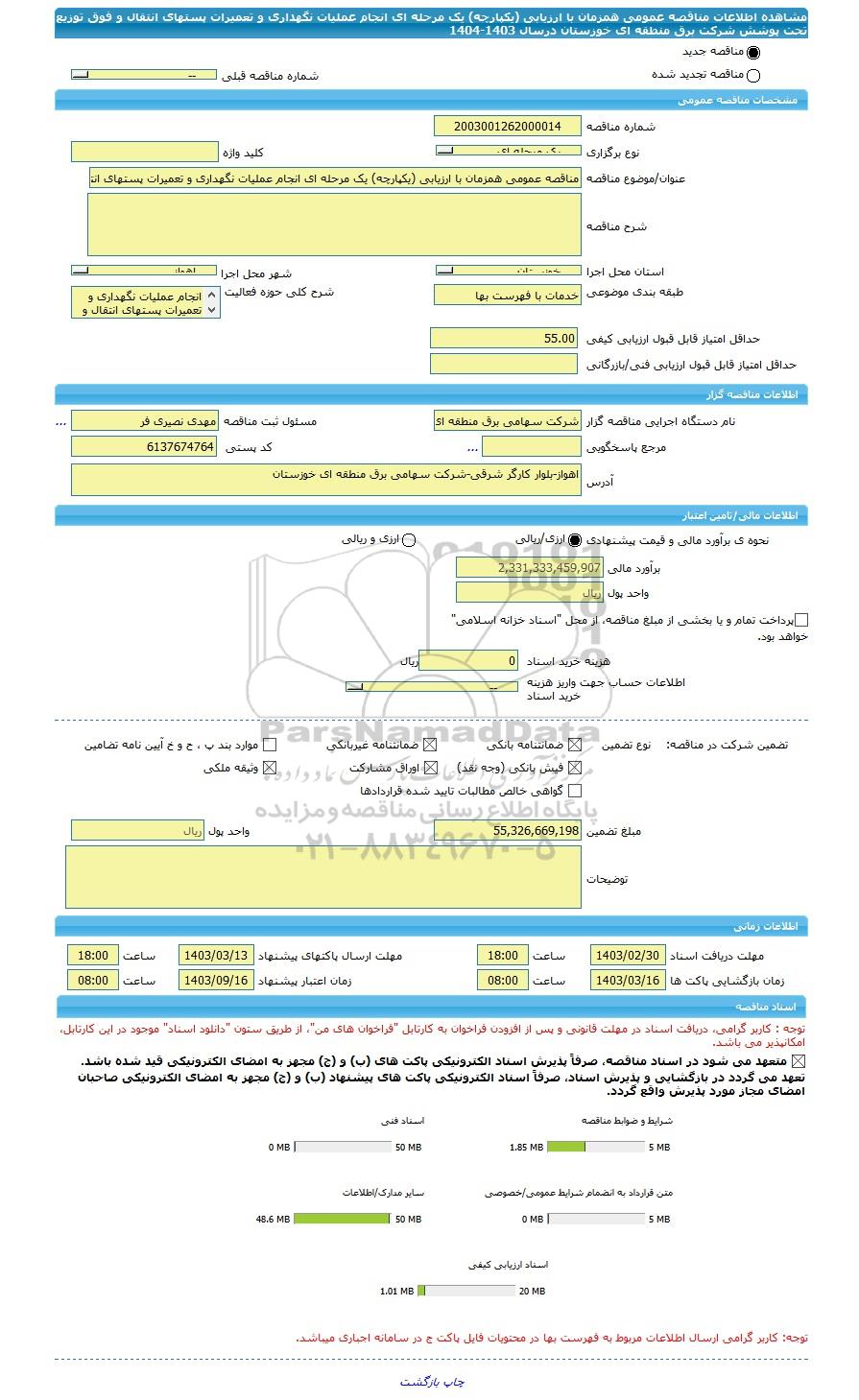 نام دستگاه اجرایی مناقصه گزارشرکت سهامی برق منطقه ای خوزستانمسئول ثبت مناقصهمهدی نصیری فر