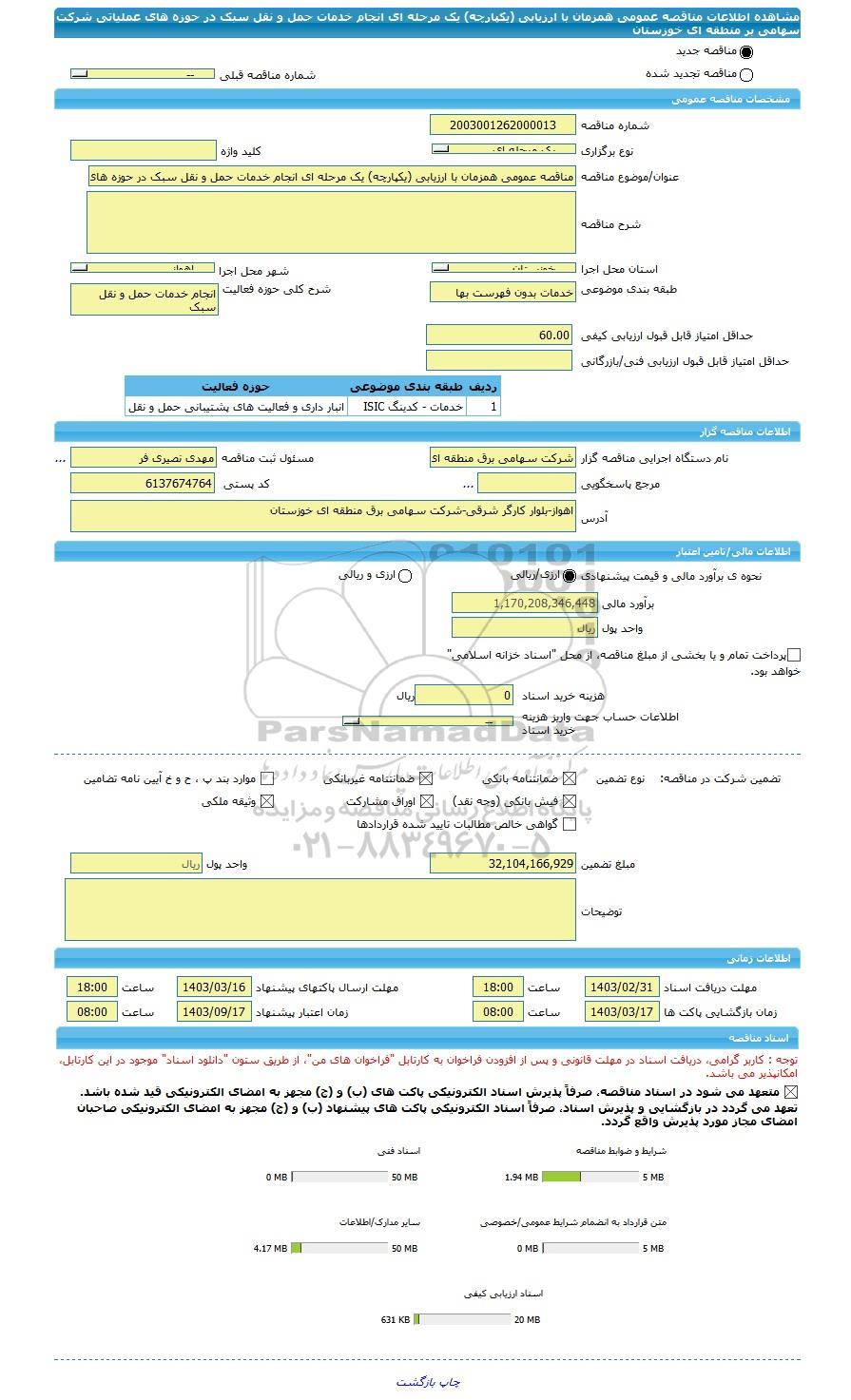 | شماره مناقصه | 2003001262000013 | ||||||||