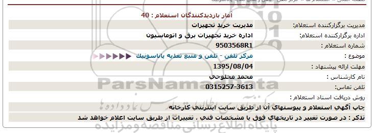 اداره برگزارکننده استعلام: اداره خرید تجهیزات برق و اتوماسیون