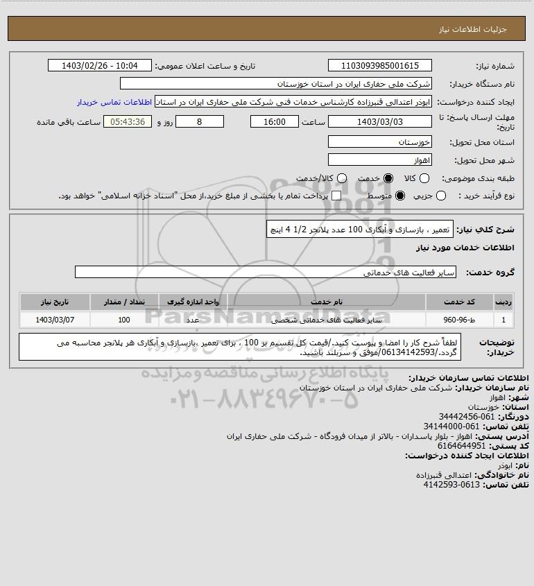 نام دستگاه خریدار:شرکت ملی حفاری ایران در استان خوزستان