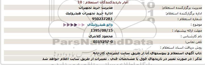 اداره برگزارکننده استعلام: اداره خرید تجهیزات هیدرولیک