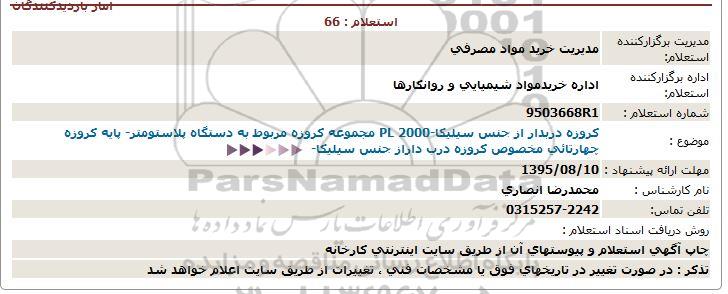 استعلام مجموعه کروزه مربوط به دستگاه پلاستومتر-95.8.5, استعلام , مجموعه کروزه مربوط به دستگاه پلاستومتر-95.8.5