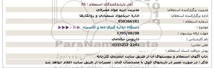 اداره برگزارکننده استعلام: اداره خریدمواد شیمیایی و روانکارها
