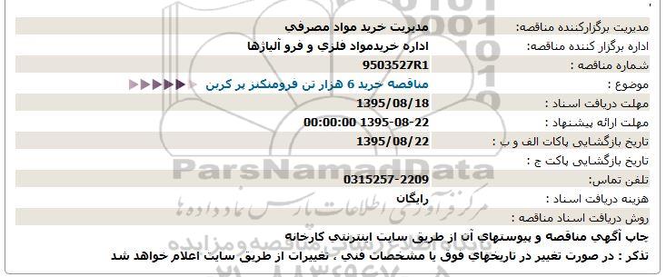 موضوع : مناقصه خرید 6 هزار تن فرومنکنز پر کربن
