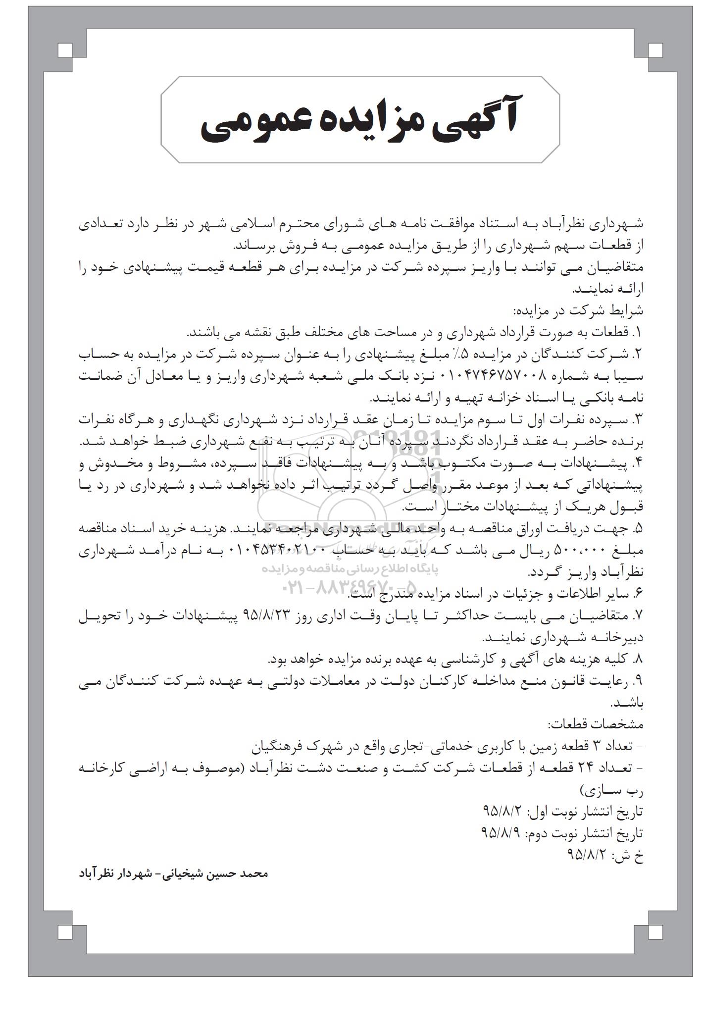 مزایده فروش تعدادی از قطعات سهم شهرداری