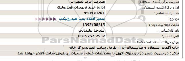 موضوع : تعمیر 6 عدد پمپ هیدرولیكی