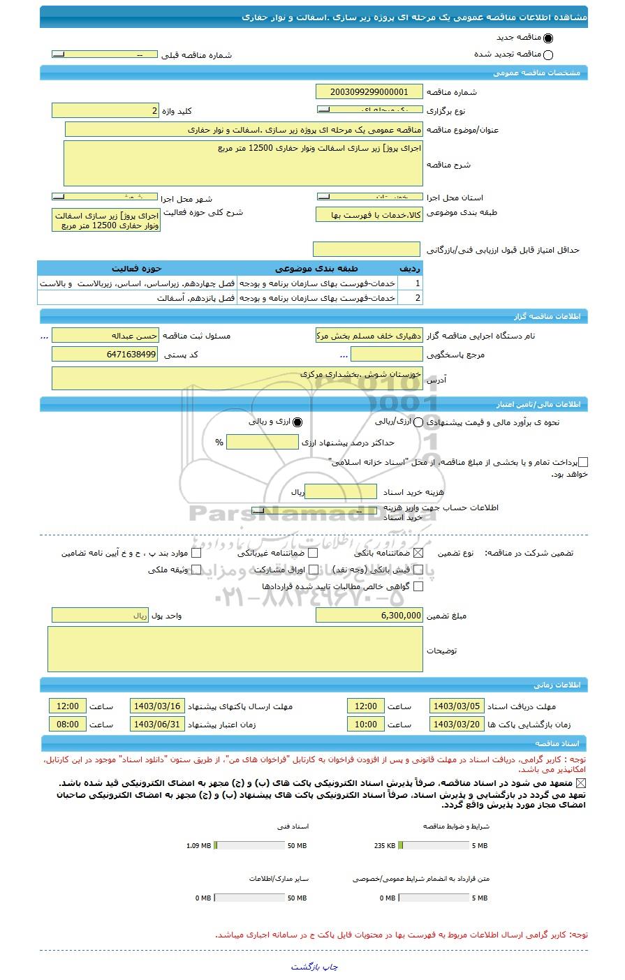| مبلغ تضمین | 6,300,000 | واحد پول | ریال |