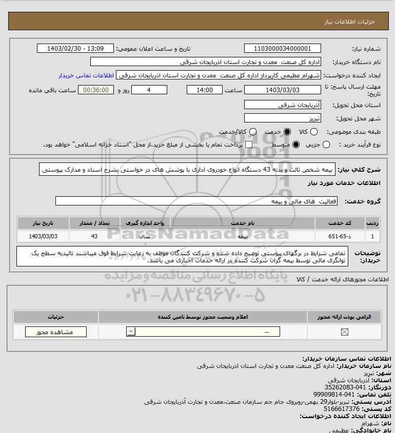 نام دستگاه خریدار:اداره کل صنعت معدن و تجارت استان اذربایجان شرقی