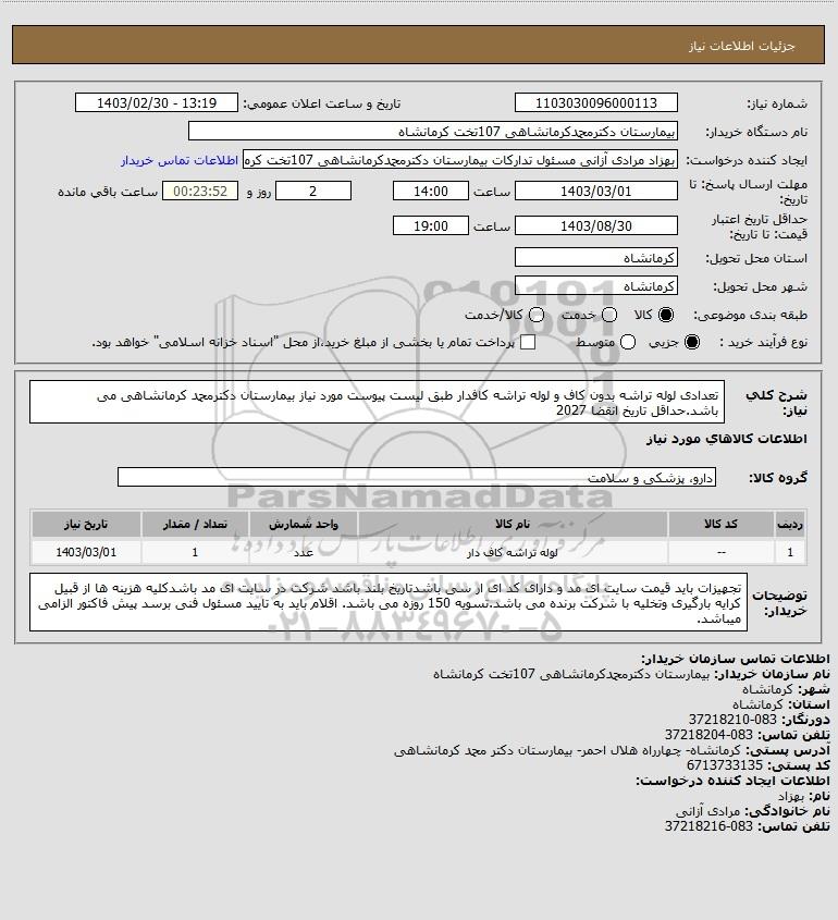 نام دستگاه خریدار:بیمارستان دکترمحمدکرمانشاهی 107تخت کرمانشاه