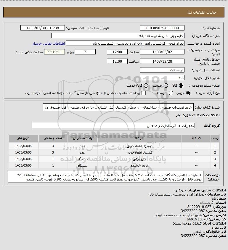 | 2 | -- | کپسول اطفاء حریق | عدد | 3 | 1403/03/06 |
